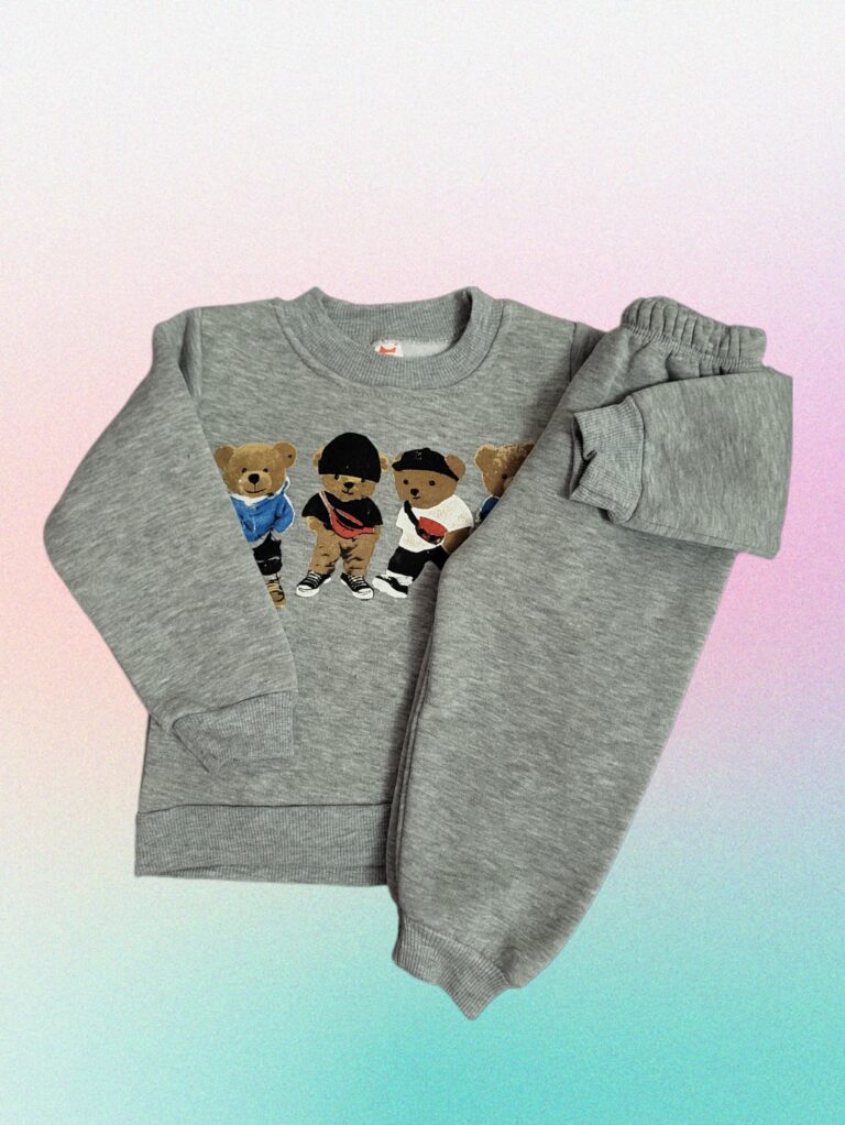 Pilkas “Meškiukai” šiltas komplektukas
